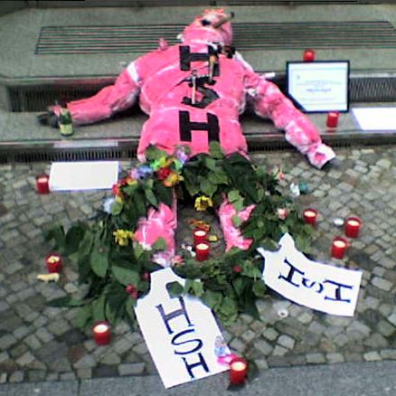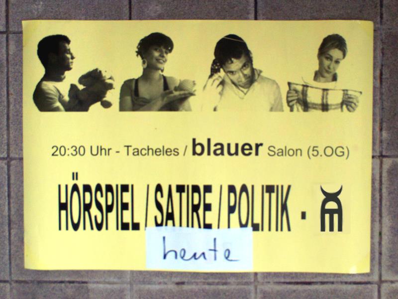 Nie war es um die Meinungsfreiheit in der Bundesrepublik besser bestellt als in diesen Tagen: Auffassungen und Ideen, die den Interessen staatlicher Entscheidungsträger entgegen laufen, können ohne Gefahr für die Urheber ungehindert veröffentlicht und diskutiert werden. In diesem erfreulichen gesellschaftlichen Klima schien es den Akteuren der Plattform moderne21 angemessen, die altmodische aber bewährte Form der 'Ergebenheitsbekundung' gegenüber den Mächtigen zu restaurieren und in die heutige Zeit hinüberzuretten. Als Ort hierfür wählten sie das als regierungskritisch aber auch als tolerant gegenüber abweichenden Meinungen geltende 'Kunsthaus Tacheles'. Von diesem ungewöhnlichen aber dafür umso glaubwürdigeren Schauplatz aus mischte man sich auf im Sinne der Bundeskanzlerin „hilfreiche Weise“ in den letzten fünf Jahren ein in Belange der Justiz (Initiative 'Gewalt-geht-immer'), der Unterhaltungsindustrie ('Dudelstopp?'), der Wirtschaft im allgemeinen ('Wir-sind-Wichtig') und schließlich der Politik ('Wahlzusage').